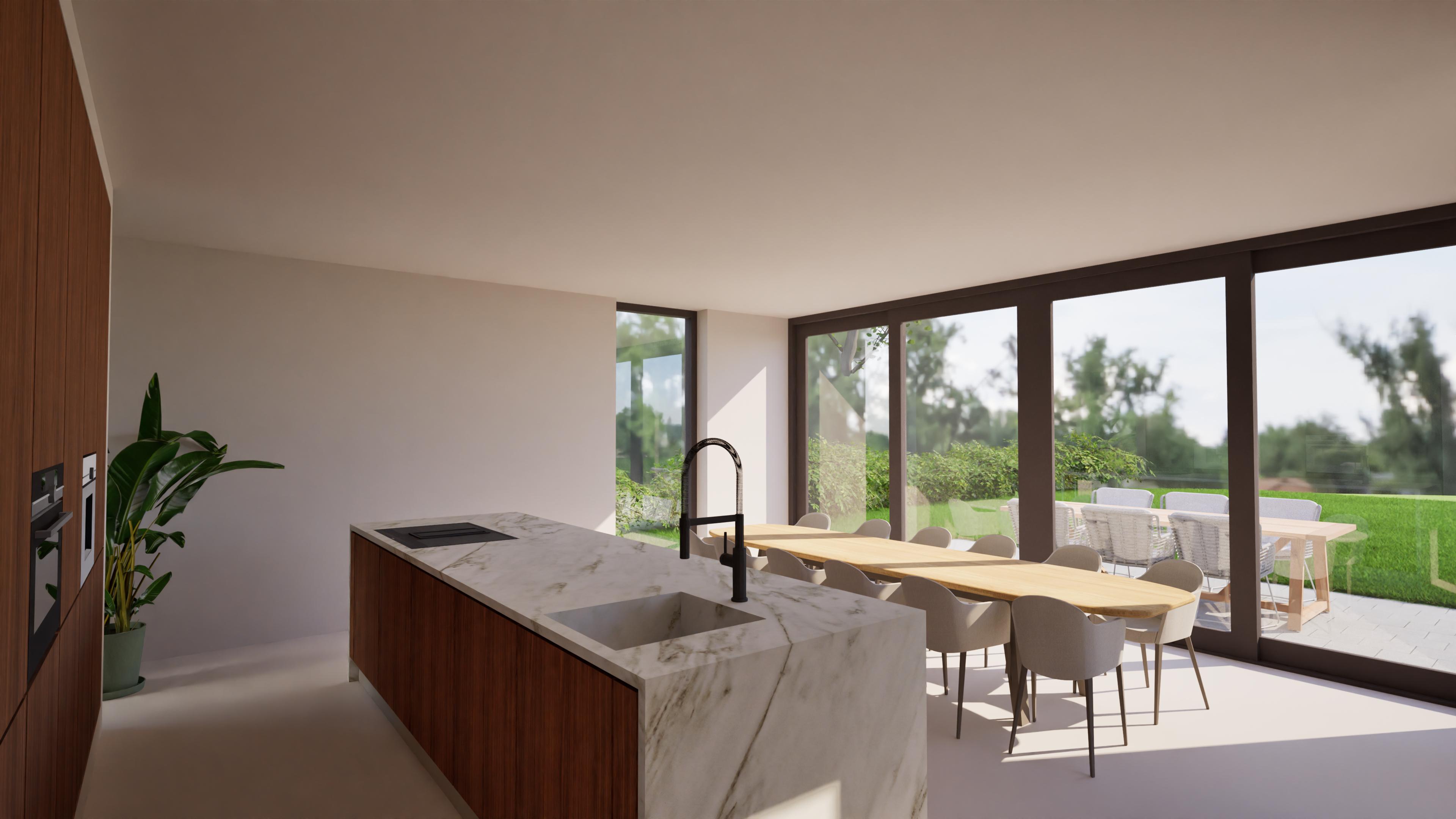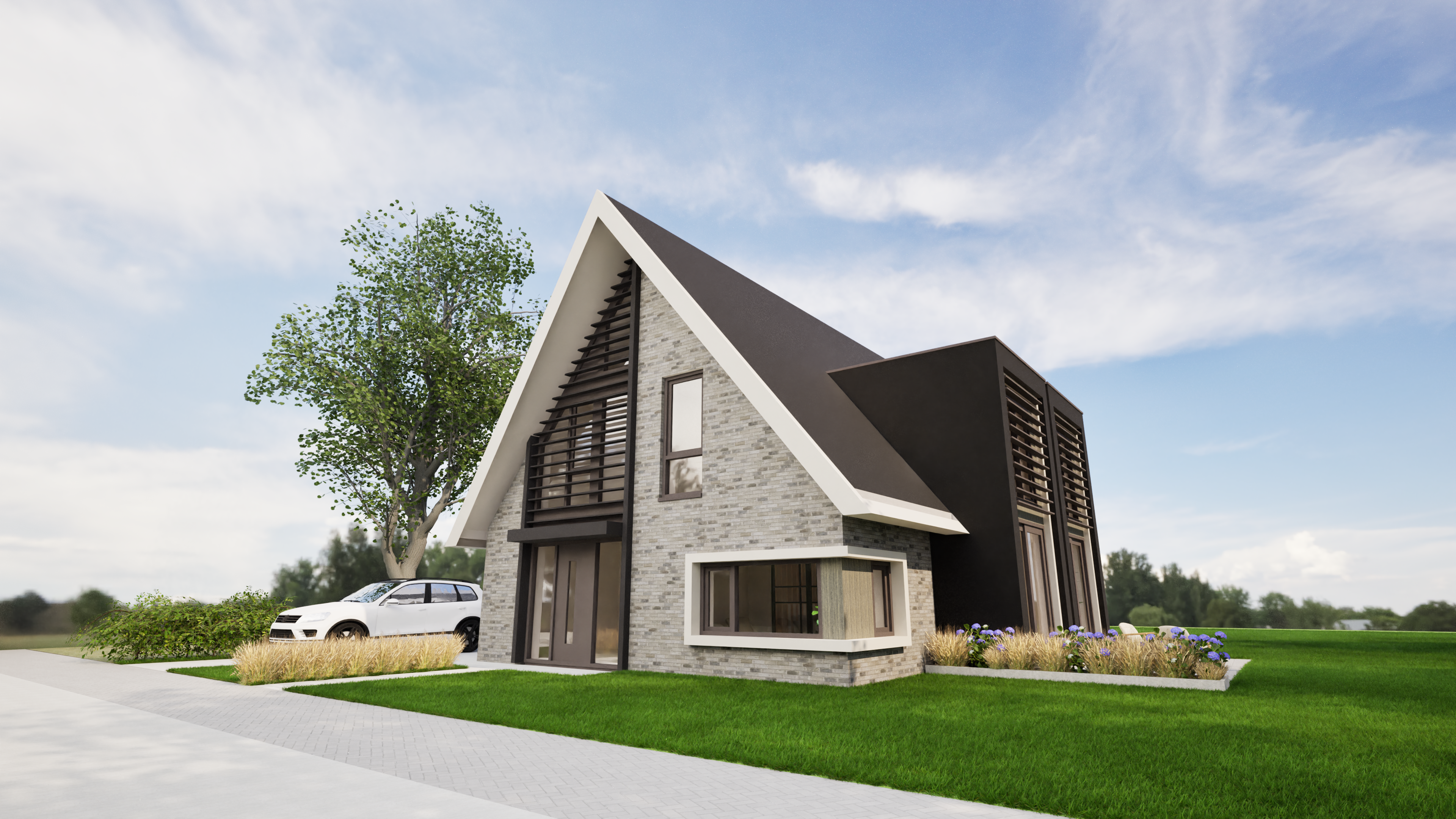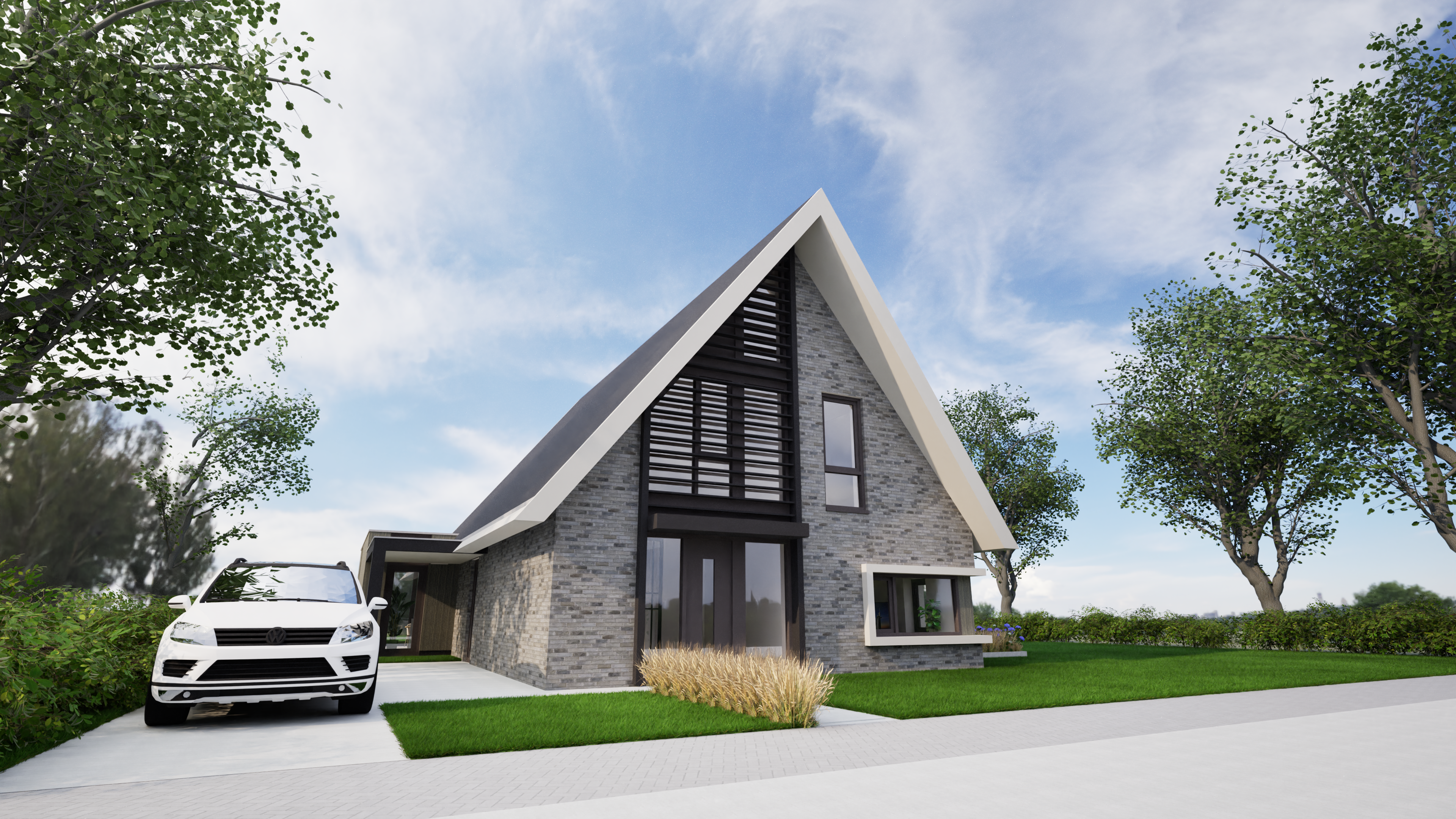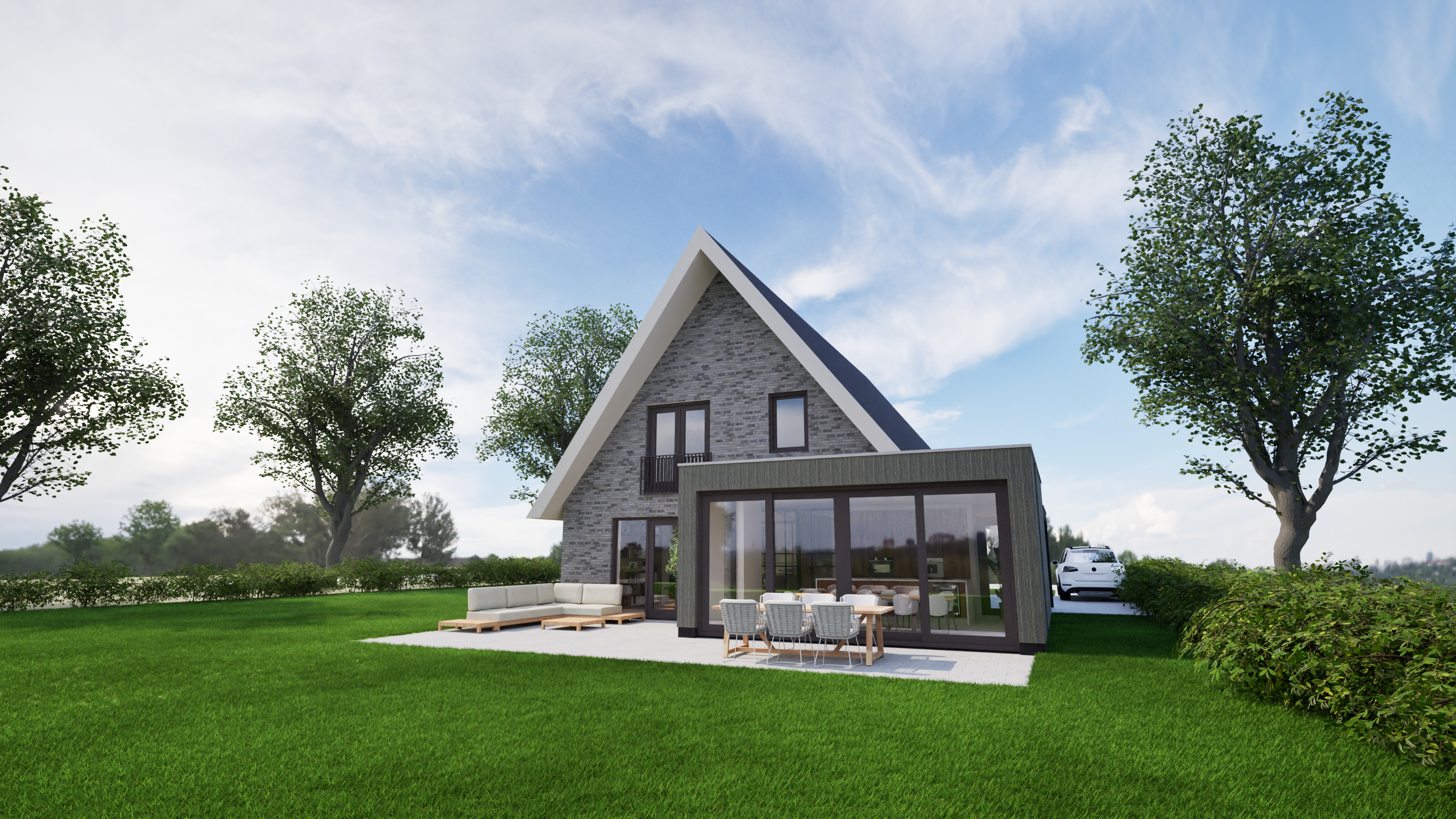 De woning is ontworpen door SûN Architecten, impressies ter indicatie van het uiterlijk.